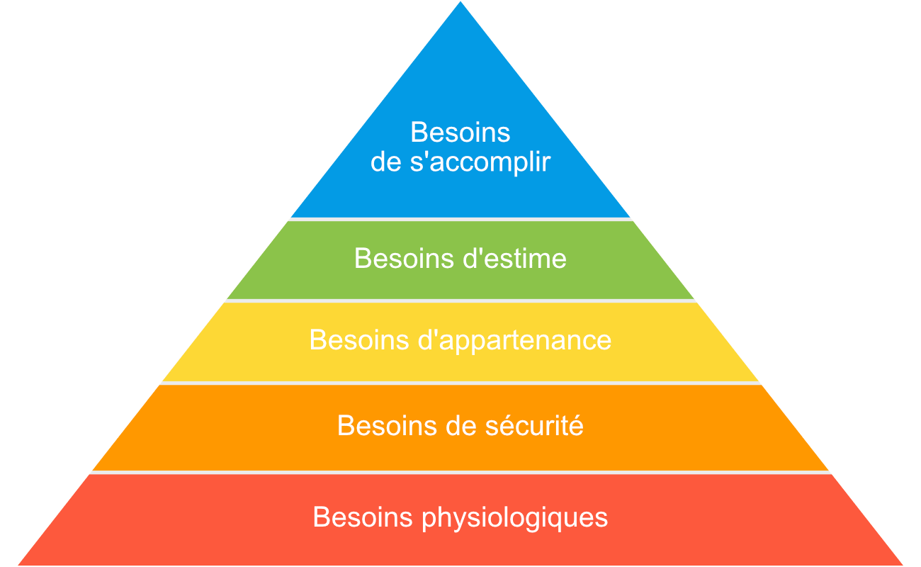 La pyramide de Maslow contenant nos 5 différents besoins